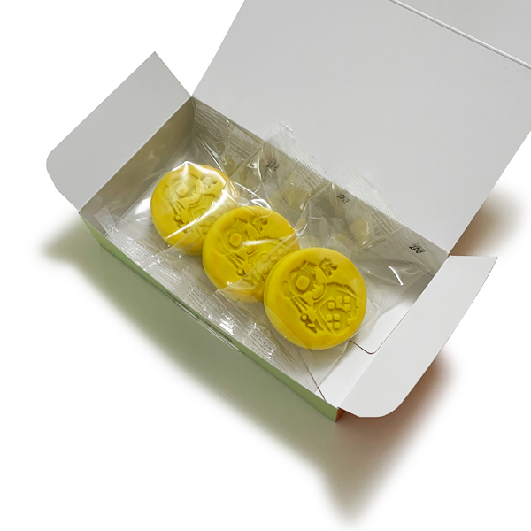 | パッケージ | 紙箱サイズ : 横15.8cm × 縦9cm × 高さ3.5cm 内容量 : 3個入り |