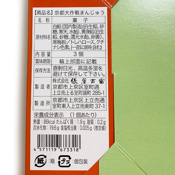【 京都大作戦2022 事後通販 】 俵屋吉富 オリジナルまんじゅう 3個入り(箱) 《申込期間7/11~7/19 発送8月下旬予定》