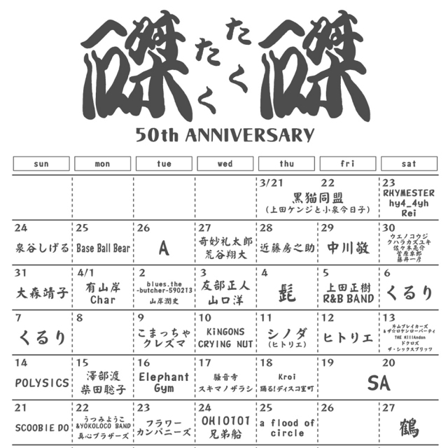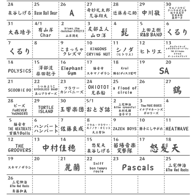裏面には、2024年3月21日(木) ~ 5月26日(日)に開催された記念ライブのカレンダーがプリントされています。