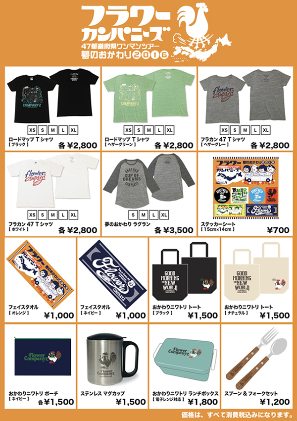 フラワーカンパニーズ 47都道府県ワンマンツアー「夢のおかわり2016」ツアーグッズを製作させていただきました。